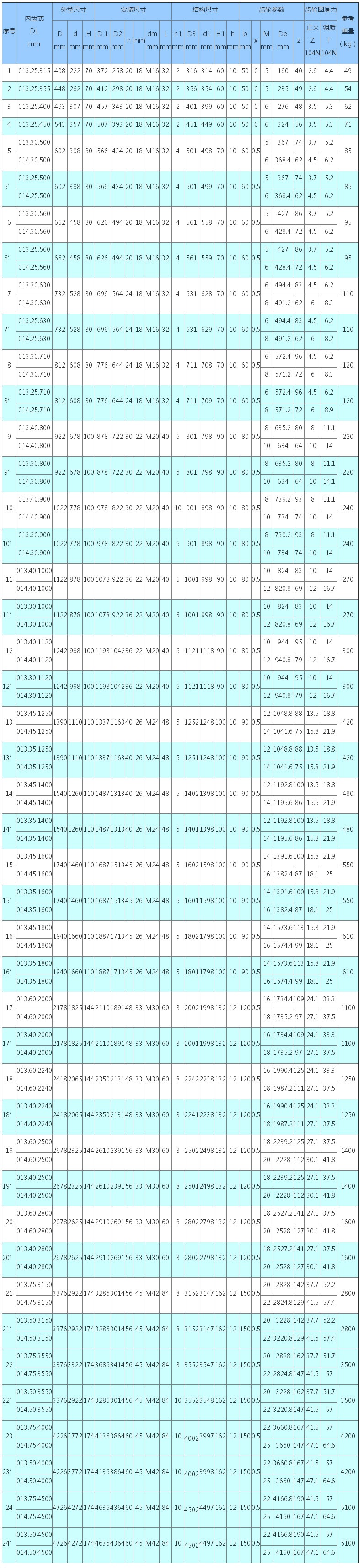 3、表內(nèi)齒輪圓周力為最大圓周力,額定圓周力取其1/2。