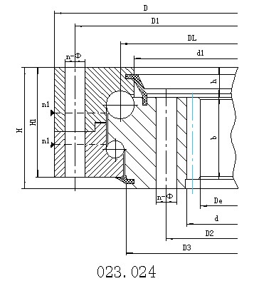 雙排球式回轉(zhuǎn)支承具有三個座圈,鋼球和隔離塊可直接排入上下滾道,根據(jù)受力狀況,安排了上下兩排直徑不同的鋼球。這種開式裝配非常方便,上下圓弧滾道的承載角都為90°,能承受很大的軸向力和傾翻力矩。當(dāng)徑向力大于0.1倍的軸向力時滾道須特殊設(shè)計。雙排球式回轉(zhuǎn)支承的軸向、徑向尺寸都比較大,結(jié)構(gòu)緊固。特別適用于要求中等以上直徑的塔式起重機(jī),汽車起重機(jī)等裝卸機(jī)械上。