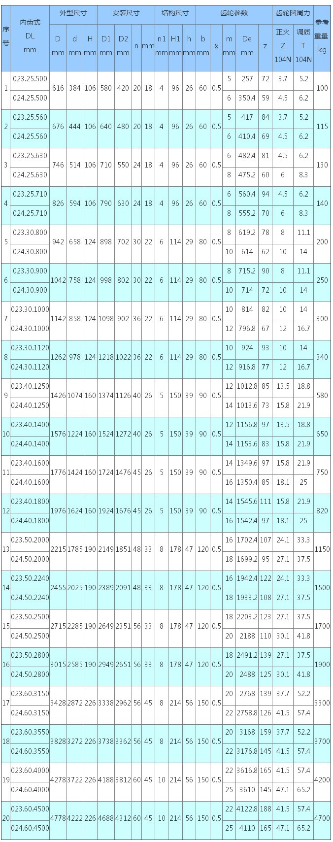 3、表內(nèi)齒輪圓周力為最大圓周力,額定圓周力取其1/2。