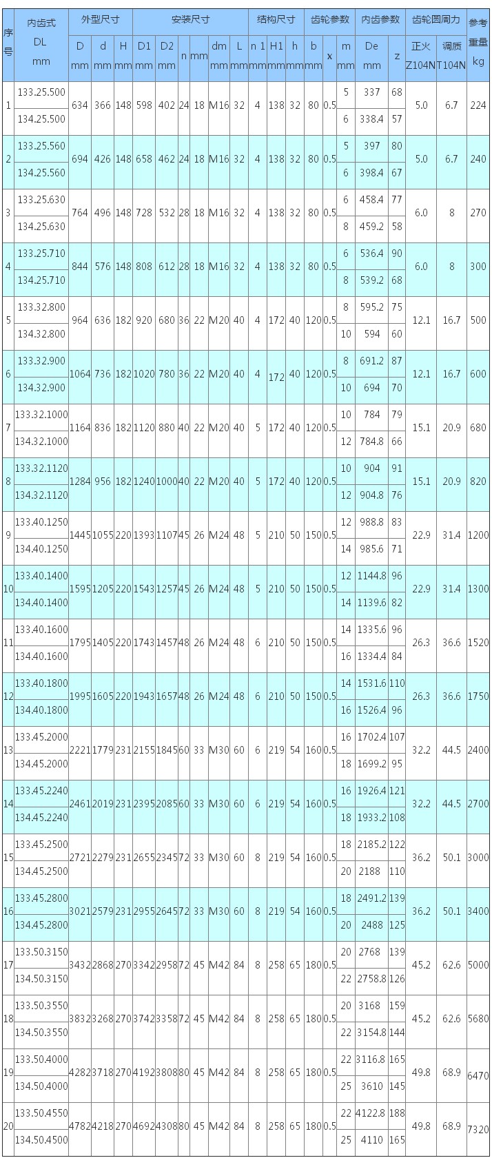 3、表內(nèi)齒輪圓周力為最大圓周力,額定圓周力取其1/2。